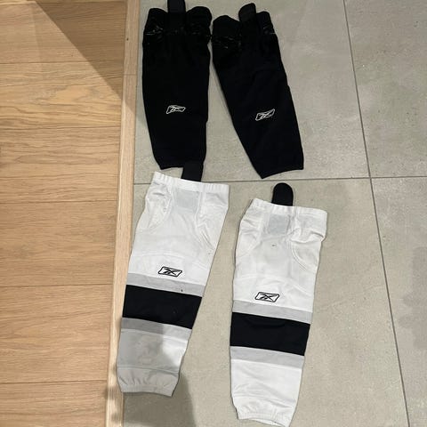 Käytetyt, mutta yleisilmeeltään siistit sukat polvi suojista ja luistimista ottanut osumaa, mutta ainakin treeneissä vielä menee.