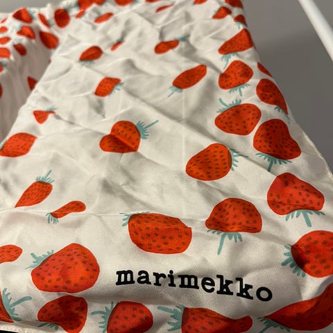 Marimekon Mansikkavuoret huivi. Erittäin hyväkuntoinen, koko 64.5 x 62cm.