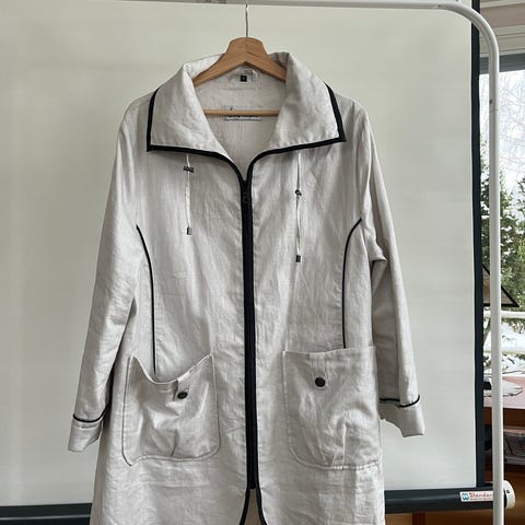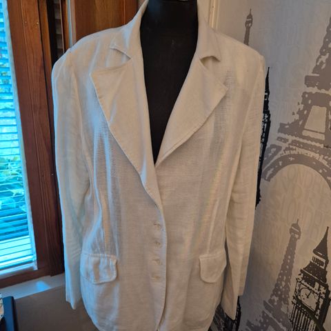 Hyväkuntoinen valkoinen pellavatakki. Jämäkkää pellavaa.