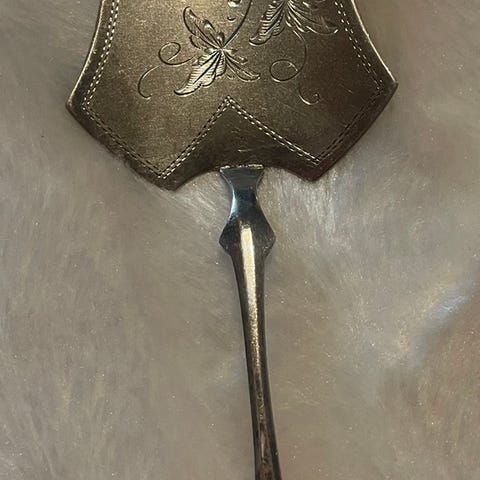 Hyväkuntoinen hopeinen piirakkalapio, juuri putsattu ja alkuperäispaketissaan.Todella vähän käytetty. Ei kaiverruksia.