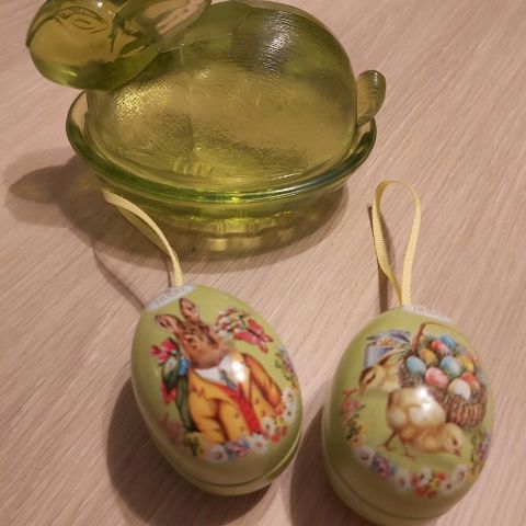 Vuosia vanha, mutta ehjä ja siisti lasinen rasia, vaikka karkeille.. Vaalean keltainen. Pupun pituus noin 12cm.