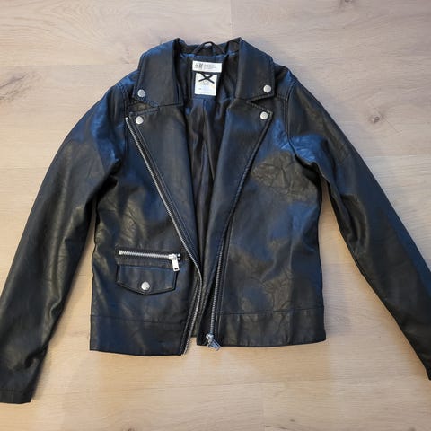 Myydään lasten (teko)nahkatakki. H&M. Kokomerkintä EUR 140, UK 9-10y. Vetoketju edessä. 2 vetoketjullista taskua. Todella siisti kuin uusi takki!!!