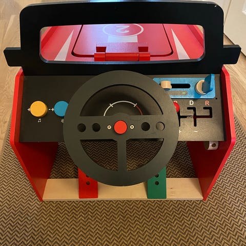 Myydään yhden leikkimä, hyvässä kunnossa oleva auto, joka toimii pattereilla. Auto voi ajaa lattialla tai mukana tulevassa "hamsterin" pyörässä.
