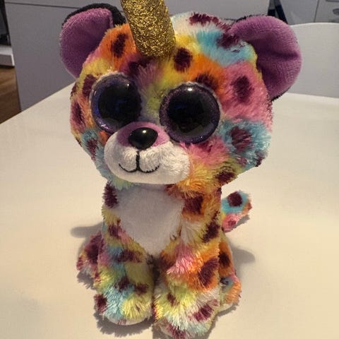 Uuden veroinen Ty leopardi avaimenperä pehmolelu. (maitopurkki kokovertailun vuoksi)