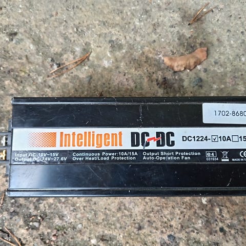 Alfatronix PV3 jännitemuunnin muuntaa 24VDC jännitteen 12VDC jännitteeksi.