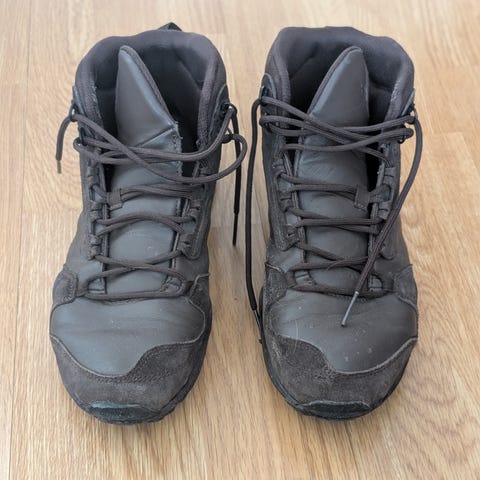 Väri on musta ja koko löytyy kuvista. Kenkiä ei ole paljon pidetty ja ainoat mainitsemisen arvoiset asiat onkin vain kuvissa näkyvät vähän likaiset pohjat (lähtevät varmasti puhtaaksi) ja muutama solmu kengännauhassa. Kengissä on vähän vartta.