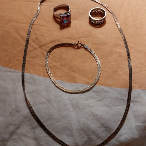 Ristomatti Ratian suunnittelema, Kultakeskuksen valmistama usko toivo rakkaus korusetti. 925 hopea. Kaulakoru riipus kork
