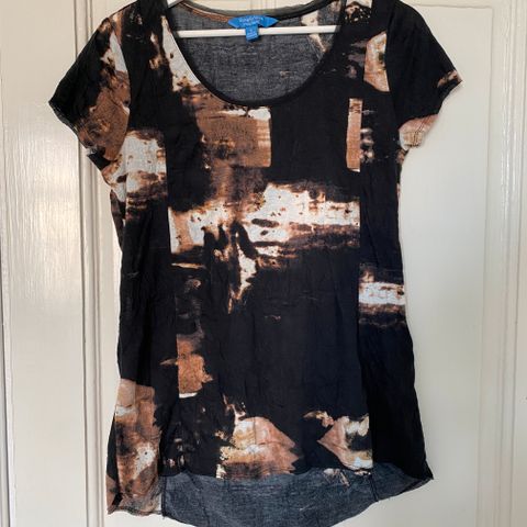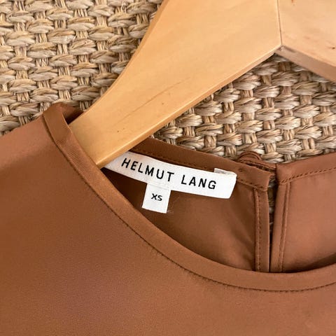 Kaunis hiekan/kultaisenkirjava kaksikerroksinen toppi Helmut Langilta. Painijaselkä, materiaali miellyttävää venyvää modaali-tyyppistä kangasta.