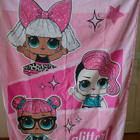 LOL pussilakanasetti ja kylpypyyhe. Siististi käytetyt, yhdellä lapsella käytössä olleet.