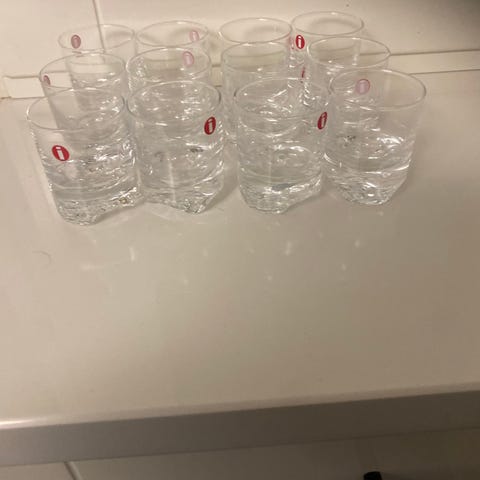 Neljä iittalan lasia ja kaksi pientä snapsilasia
