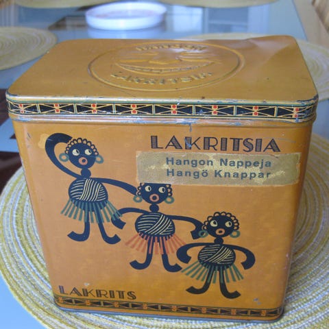 Myydään kuvien rouhea vanha keräilypurkki, Hangon lakritsapurkki, lakupurkki.