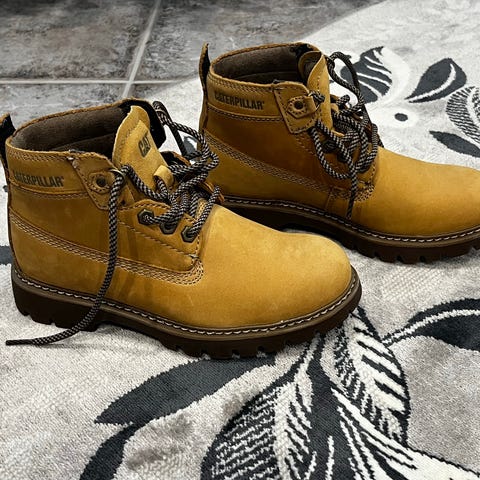 Käytetyt mutta edelleen ehjät ja lämpimät Caterpillar merkkiset talvikengät. Toisen kengät yläosassa pientä kulumaa mutta ei vaikuta käyttöön.