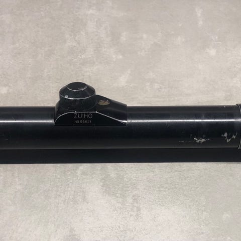 Tikka 2,5x32 made in Japan, tikka jalat ja linssin suojat(ilmeisesti ei alkuperäiset). Putki ehjä ja siisti. Linnsit on hyvässä kunnossa. Kulumaa säätöjen korkissa. Ristikko on paksu pysty keski pisteeseen ja ohut vaaka.