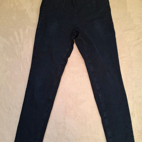 Hyvä vahva materiaali, vyötärö n. 44 cm lappeeltaan mitattuna ja lahje n. 21 cm.