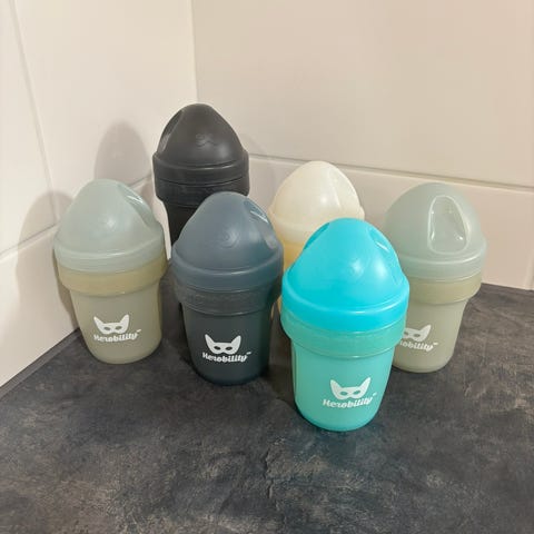 Vähässä käytössä olleet. Kahdessa tuttipullossa S kokoinen tuttipää jotka ovat streliloitu. Suositeltavaa on vaihtaa uuteen. Turkoosissa ei ole sekoitinta niin kuin muissa mutta se ei ole tarpeellinen.