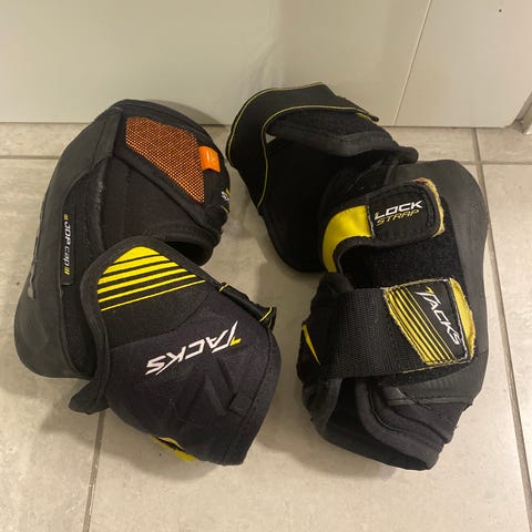 Myydään käytetyt mutta hyväkuntoiset CCM Tacks 9040 kyynärsuojat, koko JR Large.