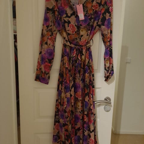 Kuin uusi todella joustava pese ja pidä ei rypisty. Violetti oranssi harmaa musta väriltään. Niskasta selkään vetoketju. Kauniit muotoleikkaukset edessä takana ja sivuilla. Kokolapussa 42 joka ei pidä paikkansa vaan koko xs/s kai kai 44 joustaa kyllä 47. Olka-helma 105. Voin postittaa postit lisätään. En käytä Toridiiliä
