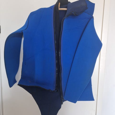 Puku on hyvässä kunnossa: vetoketju toimii, saumat ehjät eikä neopreenissa ole repeämiä. Käytetty vain vähän.