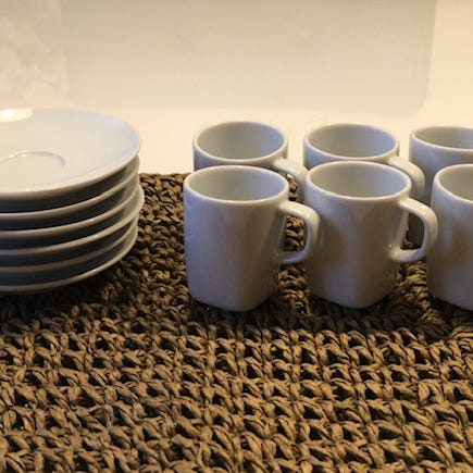 Myydään 10 kpl valkoisia espresso-kuppeja. Mukana oma lauttanen jokaiselle kupille.