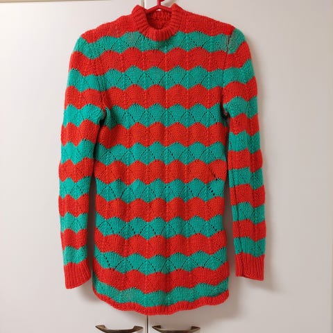 Hihaton vintage naisten villamekko, kutomakoneneulos, virkatut koristeet koko 36