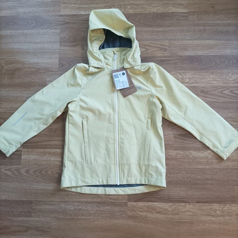 Reiman neonvärinen oranssi takki. Takin vuori kiinni erillisellä vetoketjulla, helppo ottaa pois jos esim aamupäivällä on kylmä ja iltapäivällä kuuma. Meillä ollut yhdellä lapsella käytössä. Hihansuussa jnkv pinttymää (kuva), en ole kokeillut sappisaippuaa, voisi toimia. Helmassa yksi pikkuruinen reikä kankaassa (kuva) joka helppo korjata tarrapaikalla.