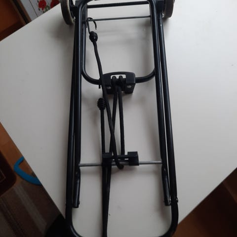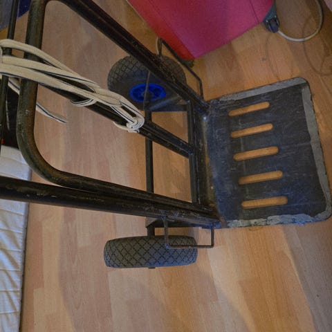 Kuvassa oleva tavaran kuljetus kärry. Korkeus maasta laatikon ylä reunaan 63cm, Laatikon leveys 40cm ja laatikon pituus 60cm. Työntökahvan korkeus maasta yläreunaan 95 cm. Renkaat täyskumia ja takana oleva osa on jalkajarru, joka lukitsee takapyörät.Helppo kuljettaa tavaraa tai esim. halkoja paikasta toiseen.
