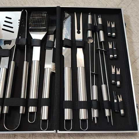 Myydään kuvanmukainen grillilasta. Tyylikäs muotoilu ja pitkä kahva. Helposti puhdistettavaa ruostumatonta terästä. Kahva on valmistettu puusta.