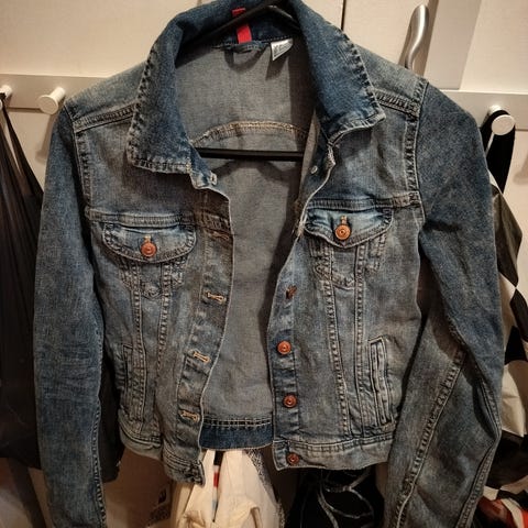 Musta lyhytmallinen farkkutakki kokoa 36. Ehjä, vähän kulahtanut. Pitkään ollut säilytyksessä, ei pesty sen jäljiltä.