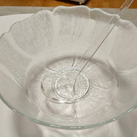 Kauniita Arcoroc Fleur -kulhoja ja tarjoilulautanen monipuoliseen käyttöön. Isoin kulho toimii mm. näyttävänä boolimaljana.