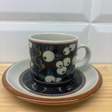 Arabian taika kahvikupit+aluslautaset. Kupin korkeus 7 cm, halkaisija 8 cm. Maksu käteisellä.