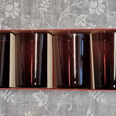 Kaksi Timo Sarpanevan lasia. Korkeus 11cm. Toisessa lähes huomaamaton särö reunassa.