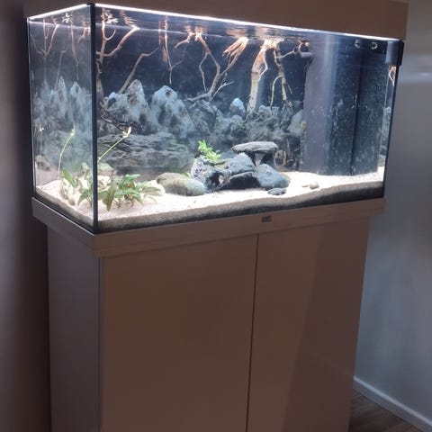 Kaksi kpl 54 litran akvaariota. Toiseen mukaan kaksi valokantta. Mukana suodattimet molemmissa,lapot,taustakuvat. 60€/ kpl tai yhteensä 100€.