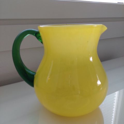 Lasikannu hanalla. Ehjä mutta likainen. Pesussa varmasti lähtee puhtaaksi.