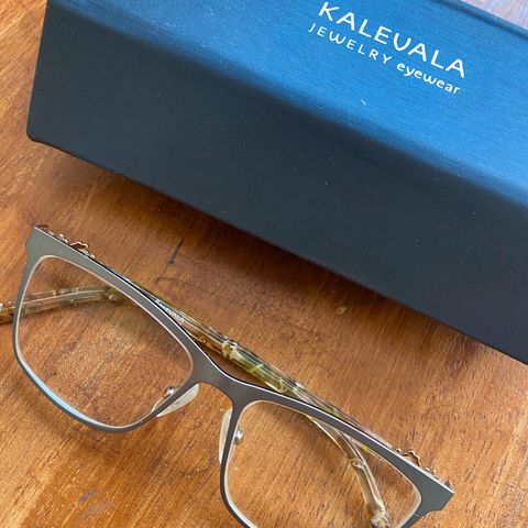 Myydään Kalevala eyewearin Mimosan hetki 2 kehykset sekä laatikko. Laseissa edelleen linssit.