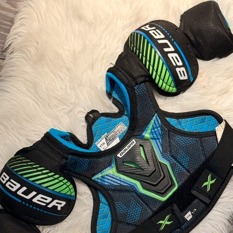 Hyväkuntoinen Bauer hartiasuoja koko Yth M seuraavalle junnulle