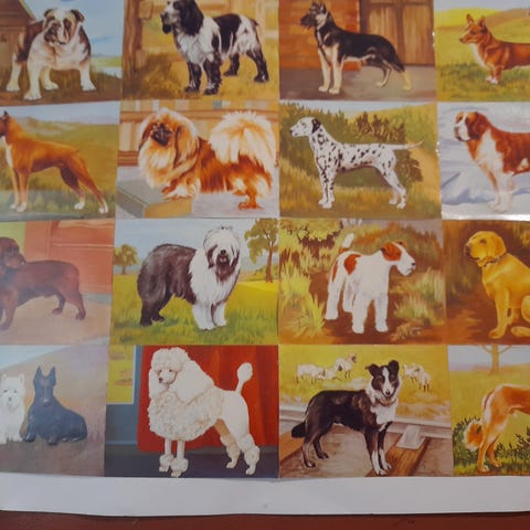 Englantilaisia Mlp keräily kiiltokuvia 9 kpl,erirotuisia koiria,