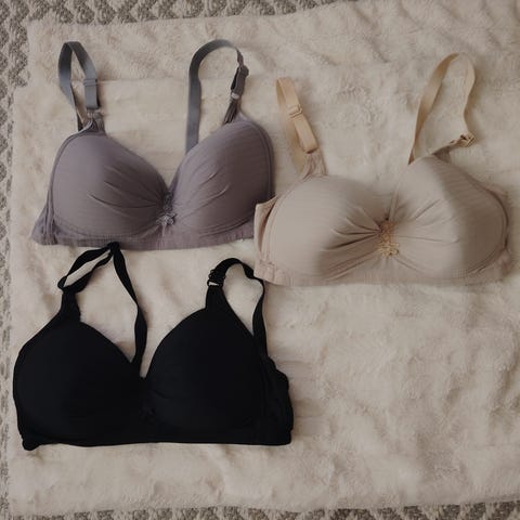 Ylhäälla 3 x 100E, keskellä 6 × 105E ja alhaalla 2 x 110E. Kaikki kaarituellisia ja tukevia, osa topattuja ja osa ilman toppauksia. Suurin osa mustia, kahdet leopardikuvioiset ja yhdet vaaleanpunaiset. Joukossa myös täysin käyttämättä jääneitä uusia merkkiliivejä.