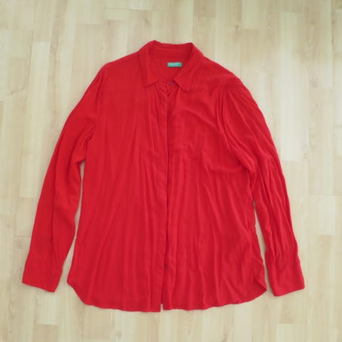 Benettonin hieman läpinäkyvä napillinen paita koossa S/M (lappu leikattu pois).
