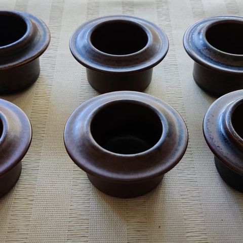 Kaksi hyväkuntoista Arabian Ruska munakuppia.