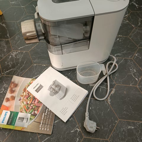 Muutaman kerran käytetty pastakone. Tällä voi tehdä monenmallisia pastoja.
