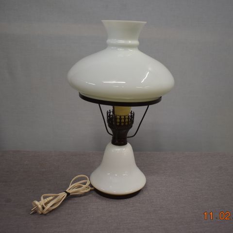 Kullan värinen pöytävalaisin valkoisella lasisella varjostimella