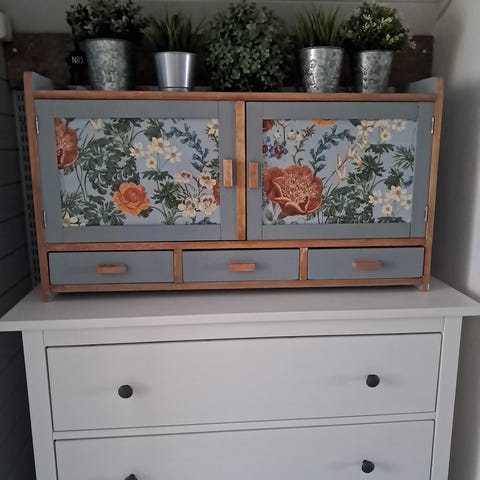 Kohtuukuntoinen emännänkaappi. Puusepän tekemä