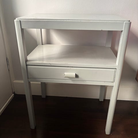 Kunnostettu puinen (koivu) yö- tai sivu pöytä 1960 luvulta. Valmistettu Ekåsenissa, Tammisaaressa.