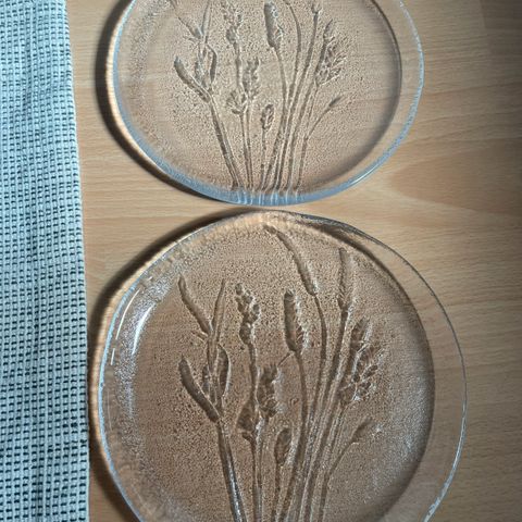 Humppilan lasilautaset, Kaija Aarikan suunnittelemat. Halkaisija 21cm. Toisessa teippitahmaa, en ole koittanut poistaa/pestä kunnolla. Hyvässä kunnossa, voi tarjota!