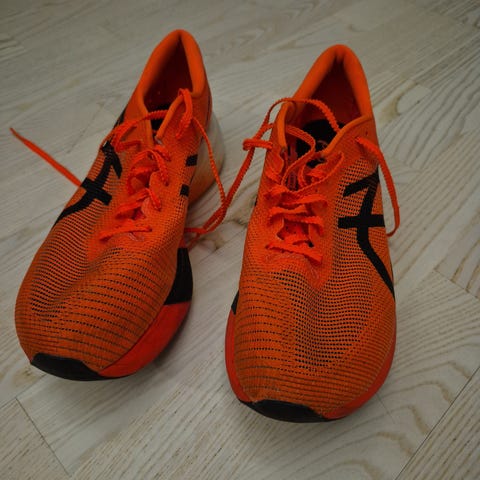 Täysin käyttämättömät, sisällä jalkaan sovitetut Asics -hiilikuitukengät. Koko eur 44, 28,0 cm.