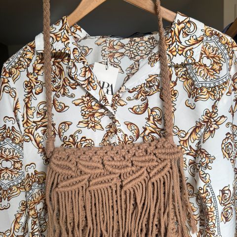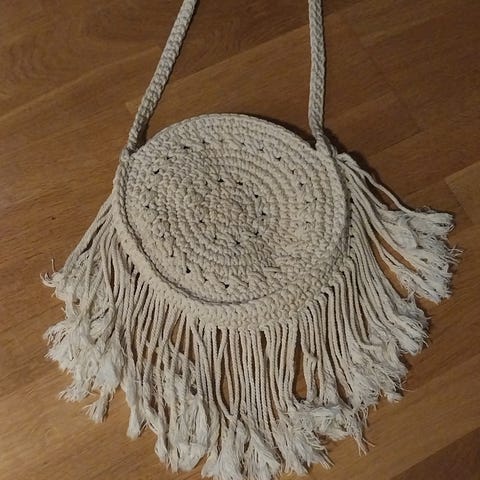 Käsintehty olkalaukku – ostettu Perusta, uniikki kudottu kuvio