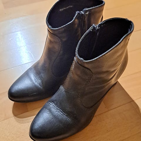 Mustat koon 38 Tamaris-nahkanilkkurit. Hyvä kunto, vähän käytetyt. Kantalaput kunnossa.