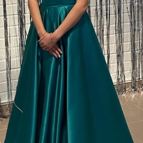 Kaunis tanssiaisleninki, Dazzling, zazabella, v.punainen, kimalteleva. Vy n. 68 cm, pituus vyötäröltä 101 cm. Ovh 500 .