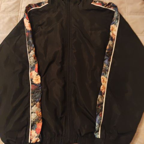 Irrotettava huppu. Pinnassa käyttökulumaa ja saumoissa pientä nukkaa, mutta yleisilme siisti. Materiaali polyesteri.