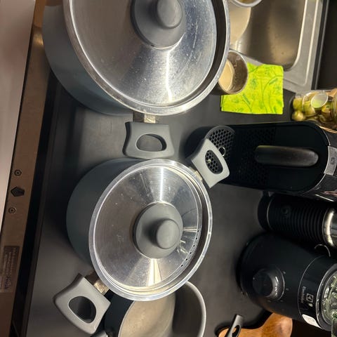 Matkailuautokäytössä olleet 2 Tefal Ingenio -kattilaa/kasaria (2 kpl) ja irrotettava kädensija/kahva (1 kpl). Kasarien kooot: 16 cm/1,7 L ja 20 cm/2,7 L.